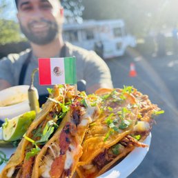 I would give more stars if possible., Customer service is amazing and if your lucky the owner will be there. He is so kind and of course my son and I had to take a photo with him. The food is amazing no matter what you have but you can't leave without having there steak street tacos!